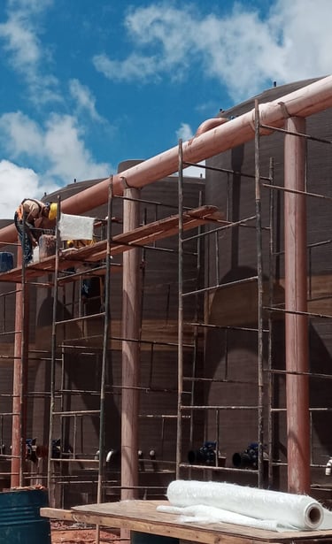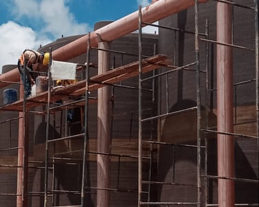 Revestimento e manutenção em tanques de fibra de vidro FRP, montagem e fornecimento de escada tipo marinheiro e guarda corpo.